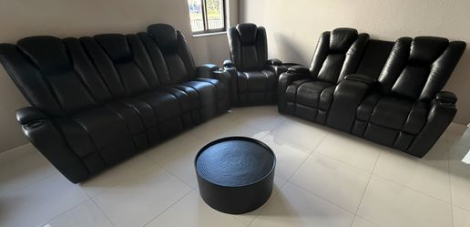 Black Leather Home Theater Reclining Seating + Tables – Excellent Condition$1,500Pompano Beach, FL