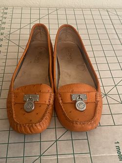 Michael Kors Hamilton Loafer 7.5M Orange Ostrich Leather MK Logo Padlock Flats$20Austin, TX