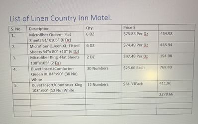 Linen For Hotels and Motels $2,200Bakersfield, CA