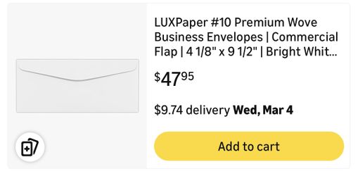 LUXPaper #10 Premium Wove Business Envelopes | Commercial Flap | 4 1/8" x 9 1/2" | Bright White | 24lb. Text | 250 Qty$25Phillips Ranch, CA