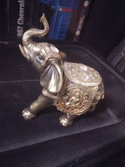 Vtg Bronze Trunk Up Elephant Sculpture Palm Tree Candle Holder Marble Base 15.5”$40San Diego, CA