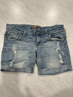 Light blue distressed denim shorts with rolled cuffs.$2Homestead, FL