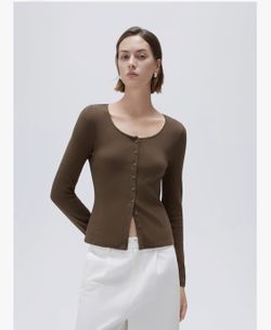 Women Cotton Ribbed Long Sleeve Tops Button Down Crew Neck Lace Line Going Out Fitted Shirt$10Oakland, FL