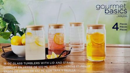 New Gourmet Basics By Mikasa 4 Piece 18 Oz Glass Tumbler With Lid & Straw$10Long Beach, CA