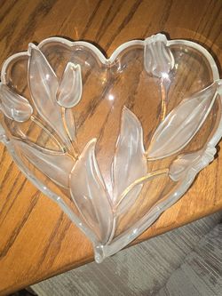 Original Walther-Glas Nadine Satin Heart Tulips Glass Dish-6"-Germany $10Sun City, AZ