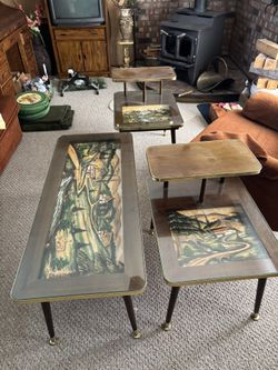 Vintage 3pc German Coffee Table Set | Mid-Century Modern Alpine Art | 1960s MCM$500Lakewood, WA