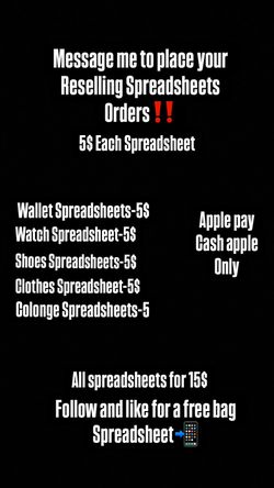 Reselling Spreadsheets 5$ For Each Spreadsheet $5Porterville, CA