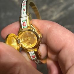 Working Floral Print Vintage Watch w/ Cover, Gems, Hinge, & Cuff$180Sandusky, OH