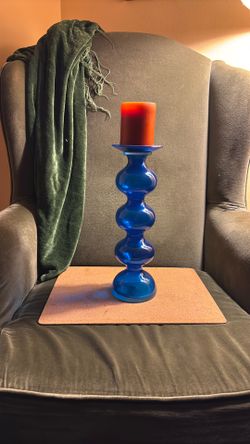Tall Blue Glass Candle Holder And Candle $25Los Angeles, CA