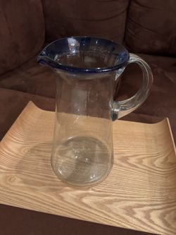 Tall Hand Blown Glass Pitcher With Blue Rim$10Los Angeles, CA