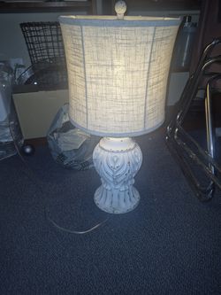 Naomi table lamp featuring a distressed white finish with gold accents, mimicking an antique finial.$20Hesperia, CA