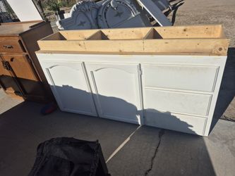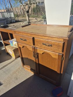 oak sideboard or buffet cabinet featuring two drawers and two cabinet doors,.$15Hesperia, CA