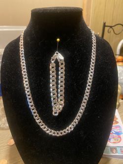 Miami Cuban Link Silver and Zirconia Chain And Bracelet $250Fontana, CA