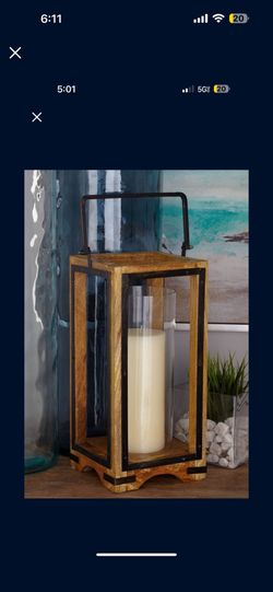 Deco 79 Mango Wood Handmade Pillar Candle Lantern, 8" X 8" X 22", Tan$20Las Vegas, NV