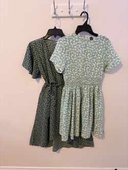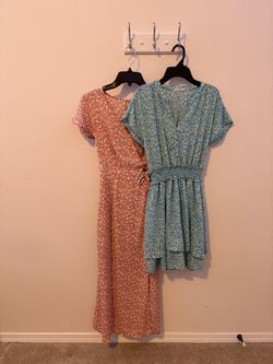 Two Floaty Floral Dresses by Sienna Sky – Pink Long Dress & Light Green/Blue Short Dress, Both Dresses Are Size XS$20Ridgefield, WA