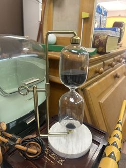 Daystar 15-minute hourglass timer featuring a marble base, brass frame, and black sand$30Garden Grove, CA