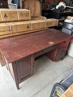 Dark Brown Large Desk Solid Wood Drawers And Cabinet$80Corona, CA