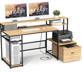 Home Office Desks with Drawers, 66'' Computer Desk with Storage, Office Desk with Monitor Stand, Work Desk with Outlets and USB, Gaming Desk with File$69Hacienda Heights, CA