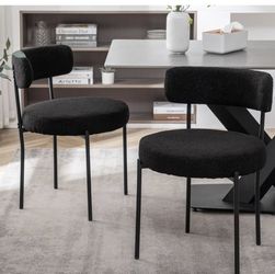Black Boucle Dining Chairs Set of 2, Upholstered Dining Room Chairs with Black Metal Legs, Round Modern Dining Chair for Dining Room, Kitchen$60Hacienda Heights, CA