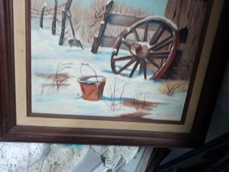 Wagon Wheel Oil Painting Signed By Prichard$100Torrance, CA