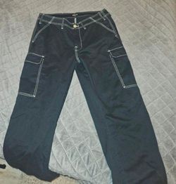 True Religion black cargo pants with white contrast stitching$25San Jose, CA