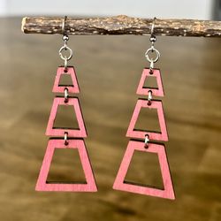Pink Laser-Cut Wood Dangle Earrings$5Austin, TX