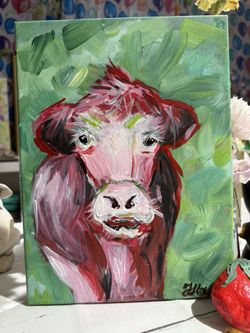Original Painting In Acrylic 9”x11”. “Whimsical Cow”$45Riverside, CA