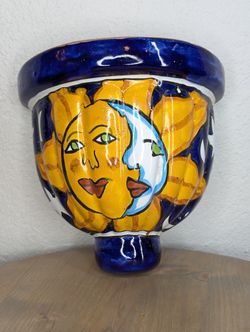 Mexican Pottery Planter Celestial Sun Moon Navy Yellow Terracotta Hanging$25Hurst, TX