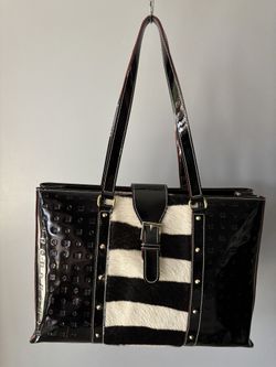 Arcadia Logo Embossed Animal Print Calf Hair Patent Leather Italian Tote$50Tinley Park, IL