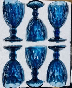 Pack Diamond Cut Vintage Plastic Wine Goblets – Dusty Blue 11oz Embossed Reusable Drink & Cocktail Glasses$4Palmdale, CA