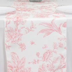 Polyester Table Runner 12"x108" White with Pink French Toile Floral Print - Exquisite Reusable Table Décor$2Palmdale, CA