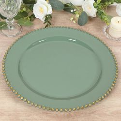 Pack Economy Plastic Charger Plates 13" Round Dusty Sage Green with Gold Beaded Rim - Stylish Dinner Party Serving Plates$1Palmdale, CA