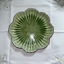 12” Vintage Big Green Flower Plate, Large Ceramic Dish, Sushi Plate, Scalloped Platter, Brunch, Party Dish$10Rockville, MD