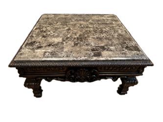 Traditional Solid Wood and Faux Marble Top Coffee Table in Cherry Casa Mollino- Coffee table- Ashley Furniture In Great Condition $500Rockville, MD