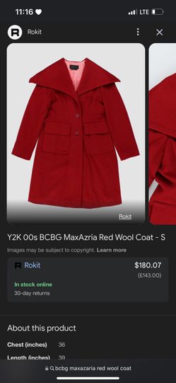 BCBG MaxAzria Xxs Red Wool Coat$100Portland, OR
