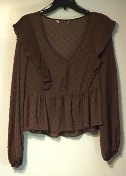 Brown long sleeve blouse with ruffle front$10Irving, TX