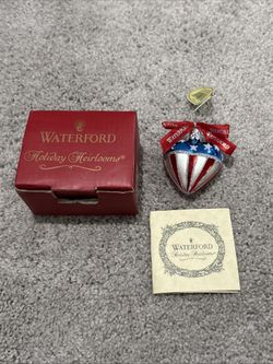 Waterford Holiday Heirlooms Stars Stripe Heart Ornament Glass USA Patriotic &Box$5Mukilteo, WA