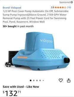 Vidapool 1/2 Hp Pool Cover Pump Automatic On Off$40Phoenix, AZ