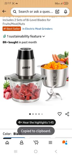 GANIZA Food Processors, Electric Food Chopper with Meat Grinder & Vegetable Chopper - 2 Bowls (8 Cup+8 Cup) with Powerful 450W Copper Motor - Includes$20Las Vegas, NV