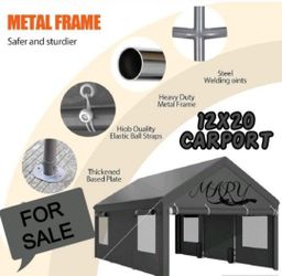 Carport, 12x20 ft Heavy Duty Carport with Roll-up Windows, Portable Garage with Removable Sidewalls & Doors, Car Canopy with Sandbags and All-Season $399Rosemead, CA