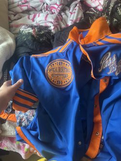 This is a New York Knicks blue and orange varsity jacket. $250Canton, OH