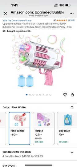 Upgraded Bubble Machine Gun - Auto Bubble Blower, 8000+ Bubbles Per Minute for Kids & Adults Indoor/Outdoor Party - Pink $25Ontario, CA