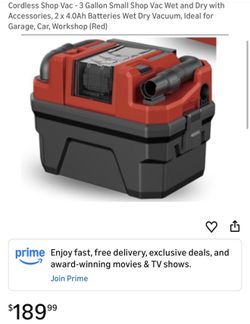 Cordless Shop Vac - 3 Gallon Small Shop Vac Wet and Dry with Accessories, 2 x 4.0Ah Batteries Wet Dry Vacuum, Ideal for Garage, Car, Workshop (Red)$100Ontario, CA