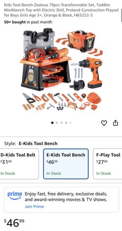 Kids Tool Bench-Zealous 79pcs Transformable Set, Toddler Workbench Toy with Electric Drill, Pretend Construction Playset for Boys Girls Age 3+, Orange$30Ontario, CA