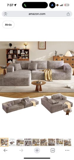 modular sofa with deep seat, boneless L-shaped corduroy sofa, modern comfort, oversized cloud sofa for living room, no assembly required (face-facing $100Montclair, CA