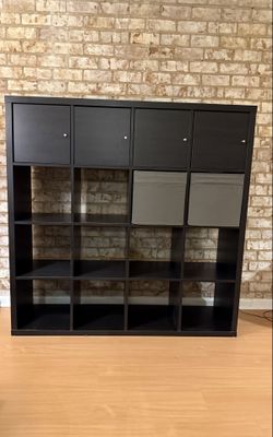 SoldIKEA Kallax 16 shelf storage unit with cabinet inserts and collapsible bins$100Oak Lawn, IL