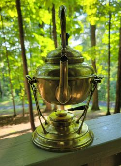 Antique Manning Bowman Brass Pouring Teapot on Stand with Burner$45Waynesville, NC