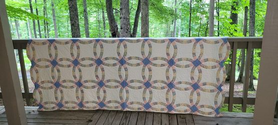 LARGE Antique Double Wedding Ring Quilt From The 1900s, Hand-Sewn With Scalloped Edges (96" X 84")$101Waynesville, NC
