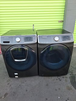 Samsung Set Washer 4.5 Cuft And Gas Dryer 7.5 Cubft Black Stainless Steel Energy 🌟 High Efficiency 27”w $800La Habra, CA