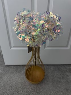 a new shiny bouquet of artificial flowers and a used metal vase$10Quincy, MA